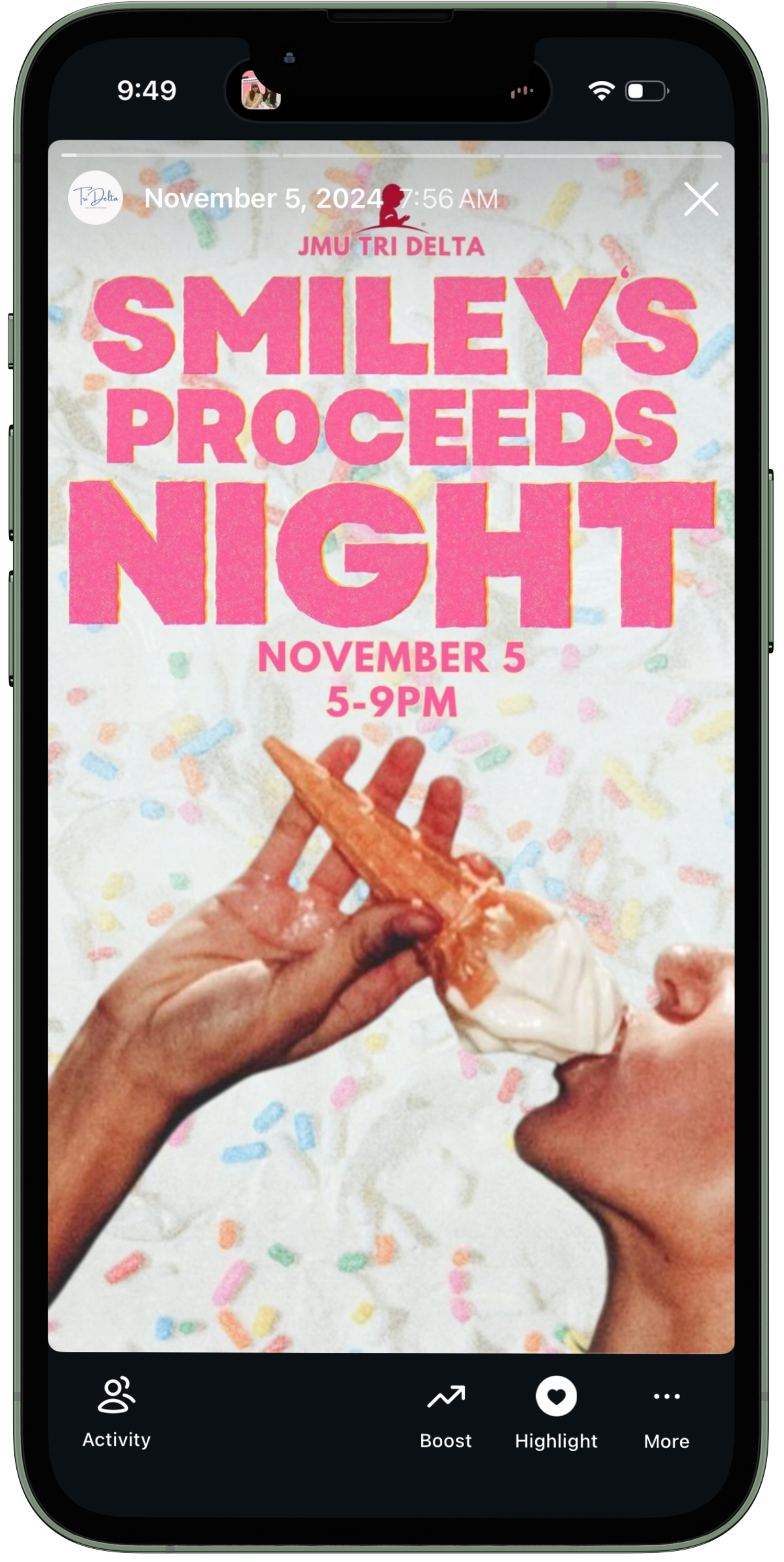 Dude, it’s for St. Jude! Each of these Instagram stories uses informative, eye-catching imagery to highlight Tri Delta philanthropy events and encourage participation.